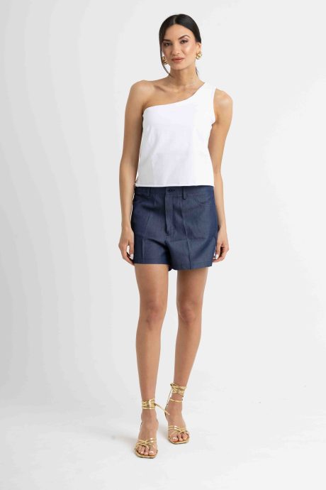 Abito stile chemisier con tastoni frontali realizzato in cotone stropicciato, modello oversize.