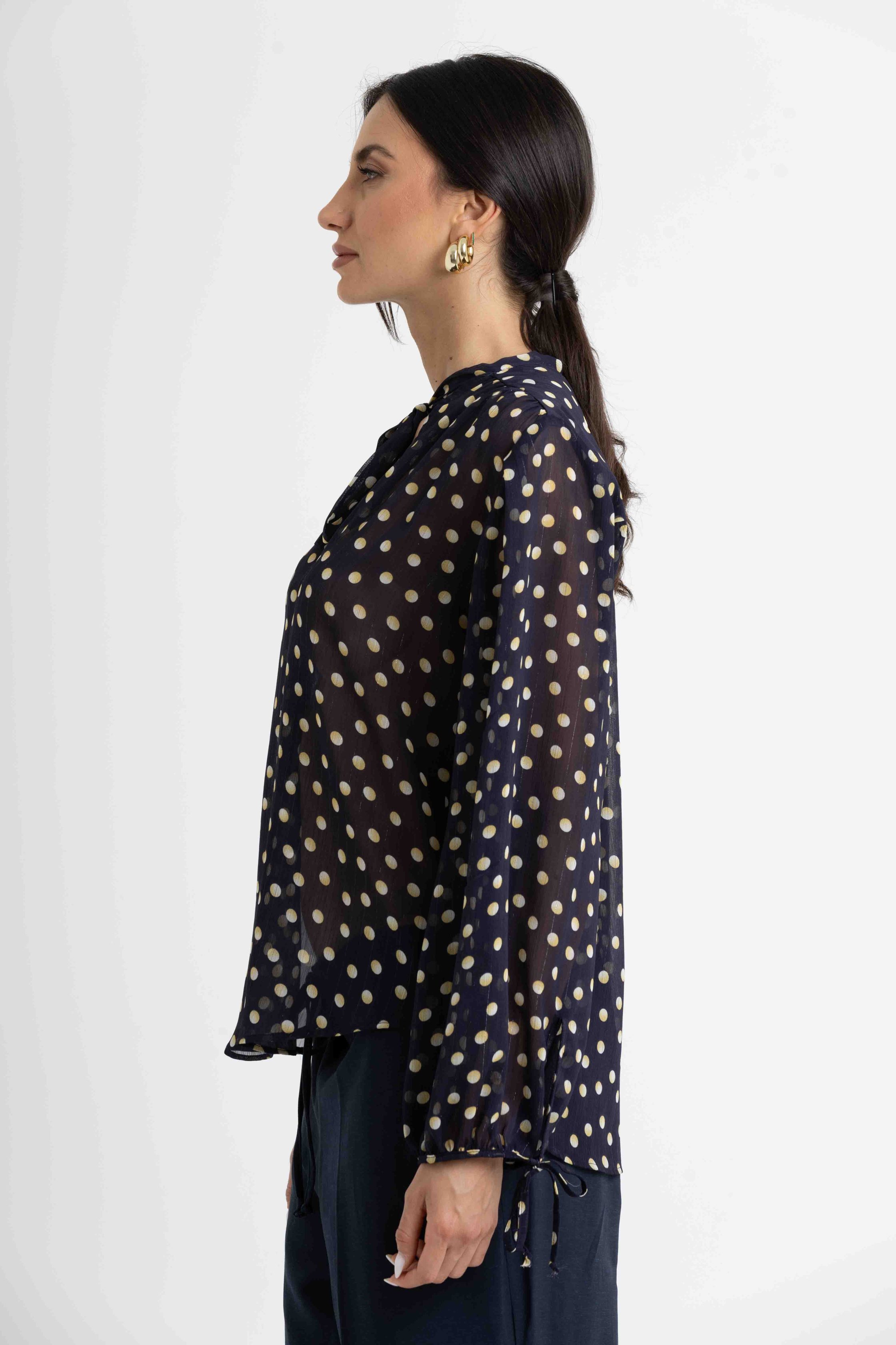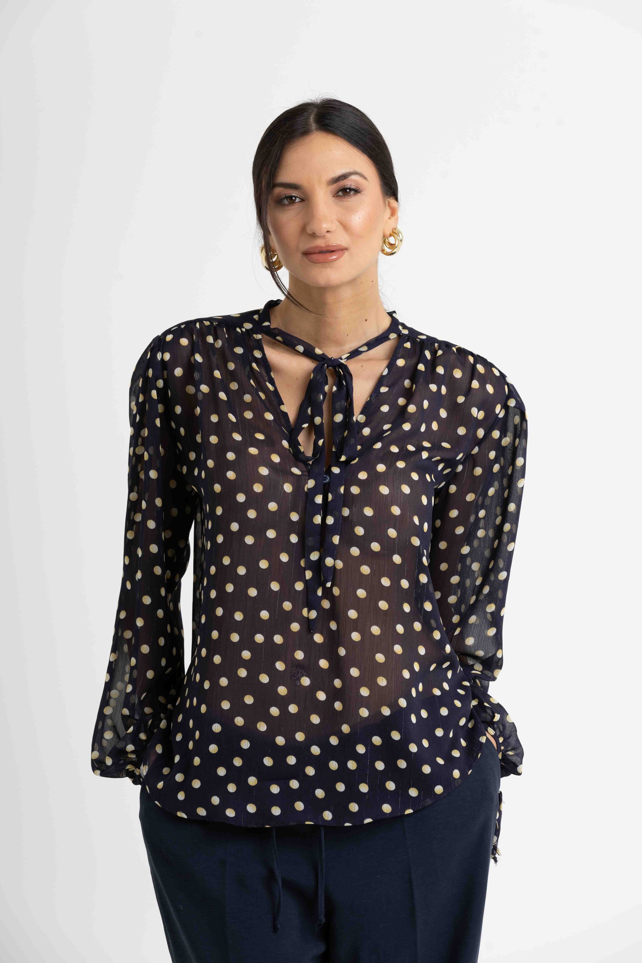 Blusa in chiffon stampato di seta e poliestere.