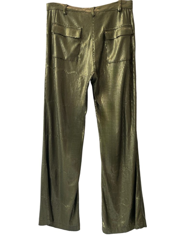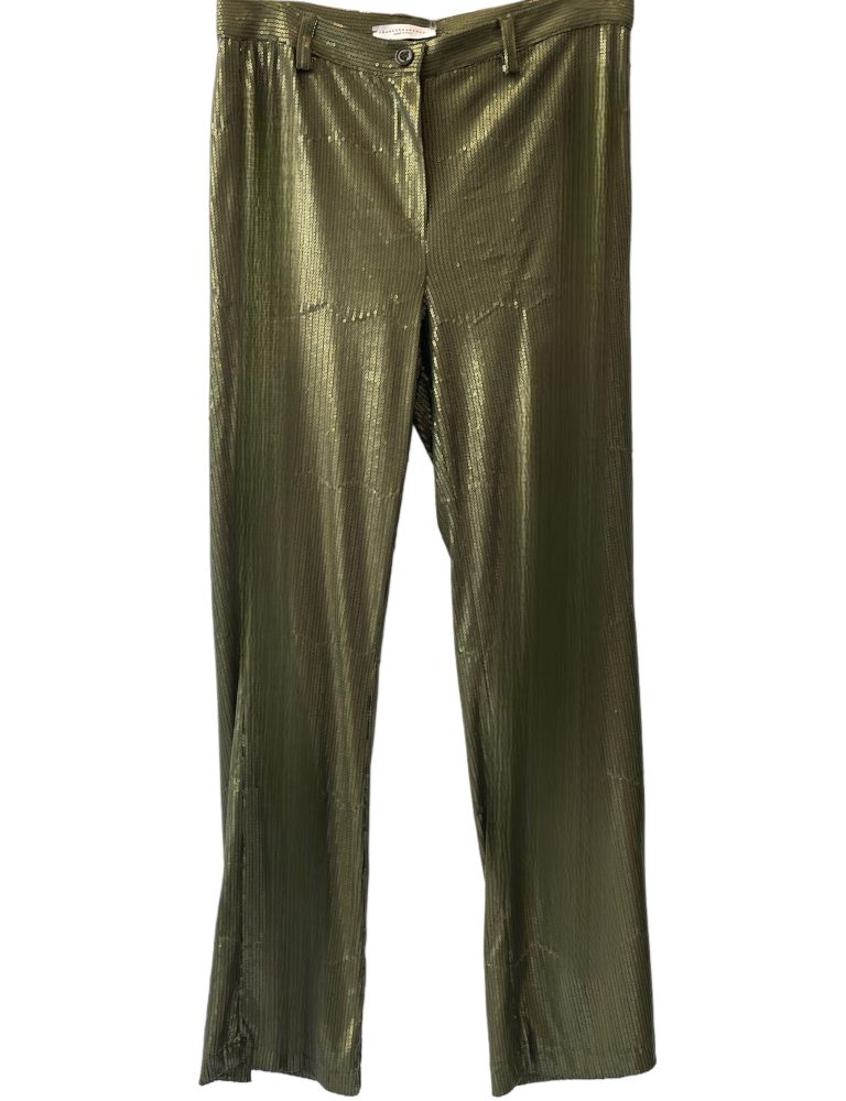 Pantaloni con paillettes, abbottonatura davanti con zip e bottone logato e tasche applicate dietro.